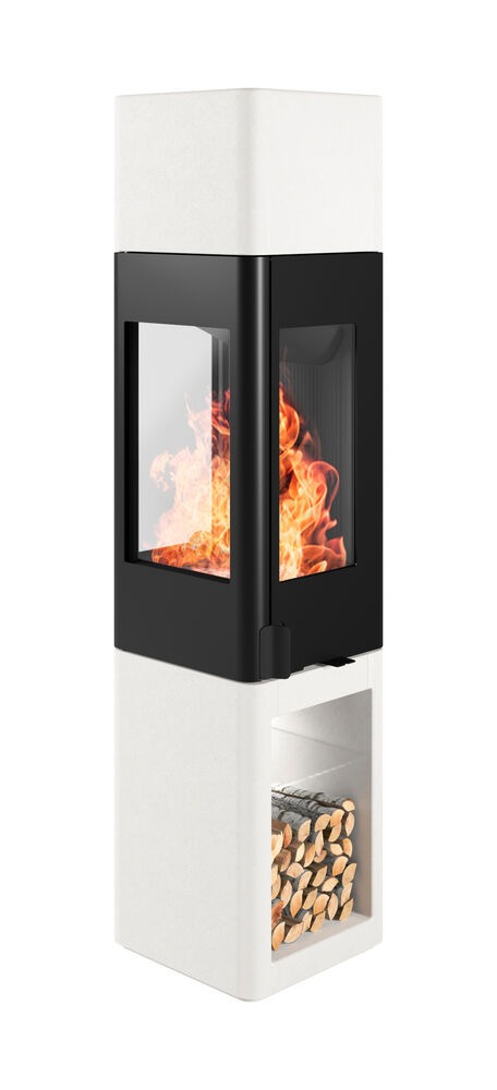 Piec wyposażono w wysoką komorę spalania z dużymi przeszkleniami, które pozwalają w pełni cieszyć się widokiem płomieni i budują wyjątkową atmosferę we wnętrzu. Pomimo swojej efektownej formy urządzenie zajmuje niewiele miejsca, dzięki czemu doskonale sprawdzi się także w mniejszych pomieszczeniach.
